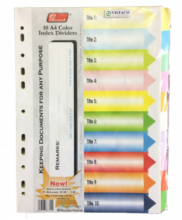 Ngoài chất lượng, màu sắc cũng là một yếu tố quan trọng tạo nên sức hấp dẫn của bìa phân trang giấy 10 số Pgrand. Sản phẩm này cung cấp sự đa dạng về màu sắc với 10 màu khác nhau, từ những tông màu nhẹ nhàng đến những gam màu nổi bật. Màu sắc không chỉ giúp người dùng dễ dàng nhận diện từng phần tài liệu mà còn tạo cảm hứng khi làm việc hoặc học tập. Việc sử dụng màu sắc hợp lý có thể tác động tích cực đến khả năng ghi nhớ và tìm kiếm thông tin.