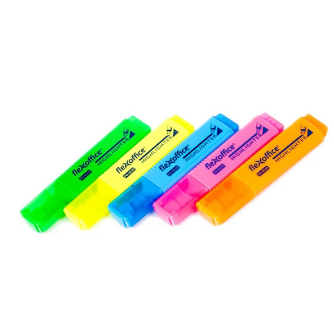 - Bút dạ quang FO-HL05 có 5 màu mực: Vàng, cam, hồng, xanh lá, xanh biển.